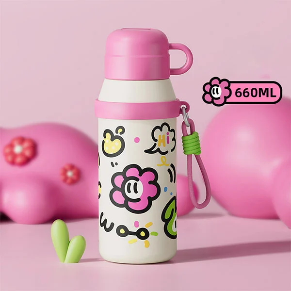 Kapacita týchto detí z nehrdzavejúcej ocele kreslená fľaša s vodou je 660 ml.